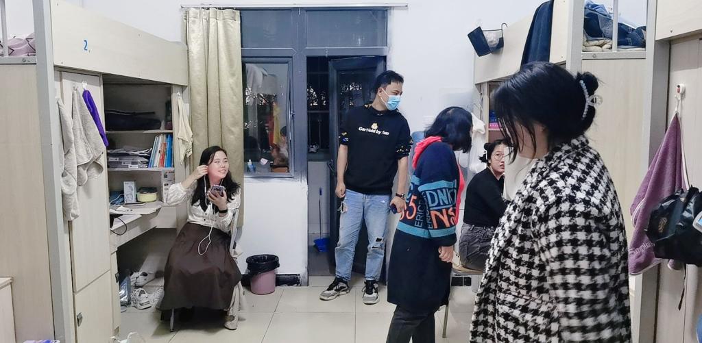 老师们进入宿舍楼后,检查楼内各项设施,排查宿舍安全隐患。在走访过程中,老师们亲切问询学生在宿舍线上学习的情况和困难;叮嘱学生要严格遵守学校防疫要求,坚持每日健康打卡,提醒学生们注意宿舍安全用电,同时就同学们在此期间学习和生活上遇到的问题,与同学们进行耐心的沟通交流。同学们对老师们的到来感到十分激动,纷纷表示在疫情防控期间一定认真遵守学校疫情防控政策,学习上努力做到不松懈,与学院一起共克时艰用实际行动落实疫情防控工作,筑牢校园疫情防控墙打好疫情防控攻坚战。