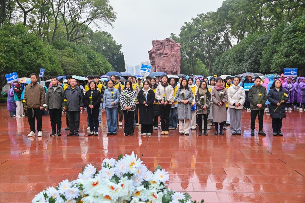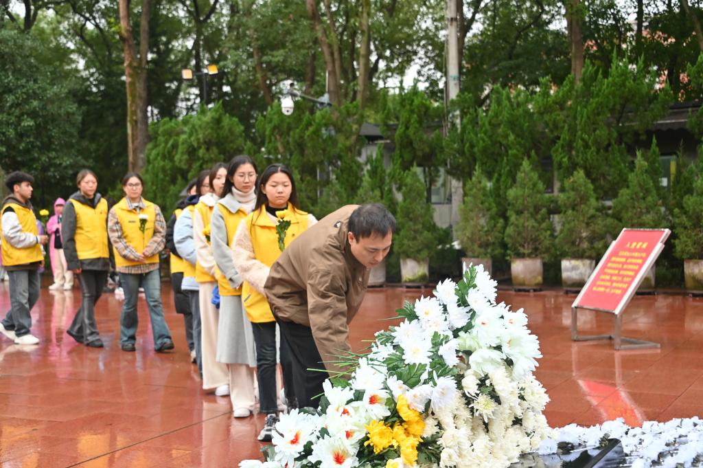 2024年11月26日,智慧商贸学院党总支在学院党总支周旖副书记的带领下,来到歌乐山革命纪念馆开展了11月主题党日活动:“11.27”烈士殉难75周年纪念活动。活动中,周旖副书记代表智慧商贸学院以及全体党员教师向英烈们献上了花圈,全体党员教师肃立默哀向烈士们致意,并依次献上鲜花,表达了对烈士崇高的敬意。