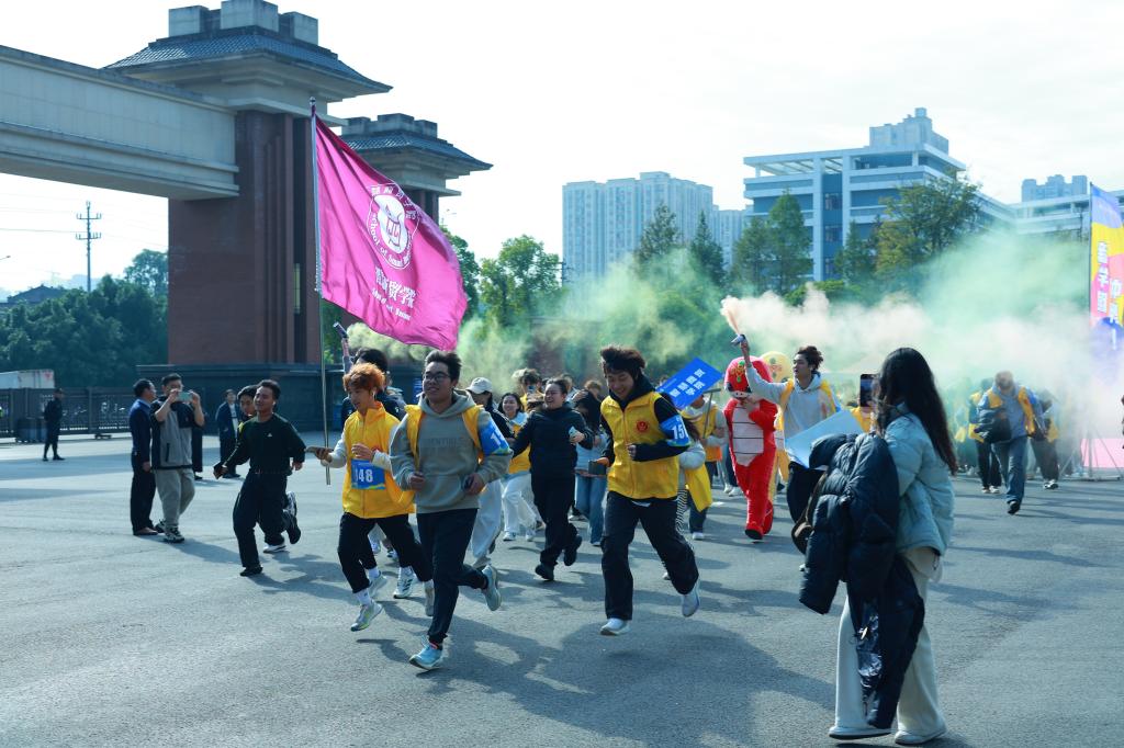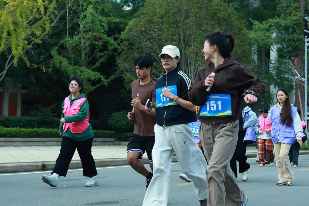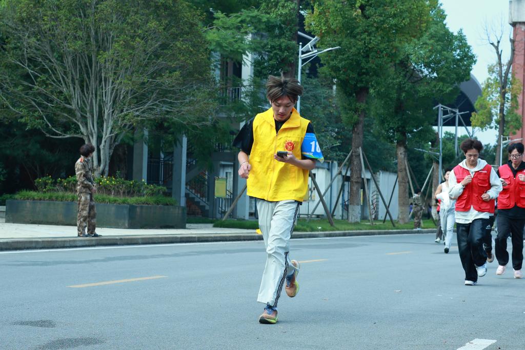 比赛当天,由院旗带头,来自全院各年级、各班级的参赛师生身着统一参赛服饰,精神抖擞地集结于起点场。随着发令枪响,选手们迈着矫健的步伐冲出起点,沿着预设赛道奋勇向前。赛道上,既有全力冲刺、追逐佳绩的 “运动达人”,用速度展现青春风采;也有携手同行、稳步前行的师生组合,在奔跑中传递同窗情谊与师生温情;更有不少初次参赛的同学,以坚持代替胜负,用毅力挑战自我极限。志愿者们提前到岗、坚守岗位,在关键路口耐心引导方向、及时提供饮水补给,用热情周到的服务为选手们保驾护航;裁判团队秉持公平公正原则,严谨记录每一位选手的成绩,确保赛事规范有序;医疗人员全程待命,配备急救物资与设备,随时准备应对各类突发情况,为赛事安全筑起 “防护墙”使整场活动在热烈、有序、安全的氛围中稳步推进。