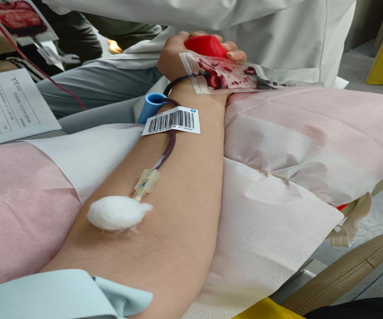 抬臂、挽袖、握拳……每一个看似简单的动作,却是那么的不平凡。采血袋里缓缓流动的热血,汇聚着当代青年的使命与担当;一袋袋血液将爱心传递,一张张献血证将青春记录。