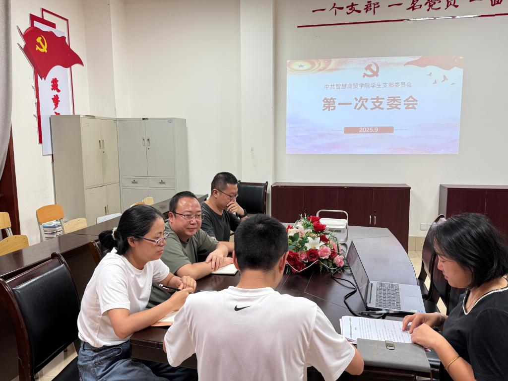 2025年9月12日,智慧商贸学院学生党支部召开9月支委会,就学生党支部书记候选人开展讨论,并学习了《习近平:凝聚上合力量完善全球治理》、《习近平:在全国生态环境保护大会上的讲话》、求是文章《习近平:坚定不移推进高水平开放》、《习近平致全国青联十四届全委会和全国学联二十八大的贺信》、《习近平:团结奋斗是中国人民创造历史伟业的必由之路》、。会议由组织委员王乾慷主持,全体委员参加会议。