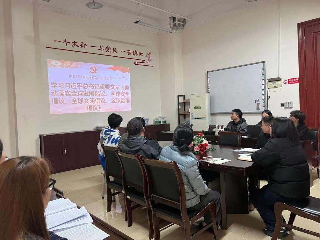 活动当中周庆莲同志系统领学了习近平总书记近期发表的一系列重要讲话和指示批示精神。学习内容重点突出,内涵丰富。与会党员深入学习了习近平总书记在党外人士座谈会和全球妇女峰会上的重要讲话精神,深刻领会其中关于巩固发展最广泛爱国统一战线、促进全球性别平等与妇女事业发展的重要论述;认真研读了习近平总书记给天津大学、中国农业大学全体师生的深情回信,深切感受党中央对教育事业的高度重视和对广大师生的亲切关怀,进一步明确了新时代青年学子肩负的历史责任。会议还集中学习了习近平总书记发表的重要文章《推动落实全球发展倡议、全球安全倡议、全球文明倡议、全球治理倡议》,引导党员从战略高度理解中国为全球治理体系改革与建设贡献的中国智慧和中国方案。同时,活动及时传达了市委六届七次全会精神,要求全体党员准确把握地方经济社会发展大局对高校人才培养提出的新要求。在专题研讨环节,与会党员结合专业背景与个人实际,踊跃发言。大家围绕“如何将总书记重要讲话精神融入日常学习与实践”“如何在服务国家战略和区域发展中贡献商贸学子的智慧”等议题展开热烈讨论。同志们一致认为,作为智慧商贸领域的学生党员,必须持续加强党的创新理论学习,胸怀“国之大者”,将个人发展融入国家发展伟业,不断提升专业素养和综合能力,努力成为堪当民族复兴重任的时代新人。本次主题党日活动主题鲜明、内容扎实、研讨深入,有效提升了支部活动的政治性、时代性、原则性、战斗性。它不仅是一次深刻的理论学习会,更是一次凝聚共识、鼓舞士气的动员会。智慧商贸学院学生党支部将持续深化理论武装,创新活动形式,引导全体学生党员自觉用党的最新理论成果武装头脑、指导实践、推动学习,在以中国式现代化全面推进中华民族伟大复兴的新征程中展现青春作为。