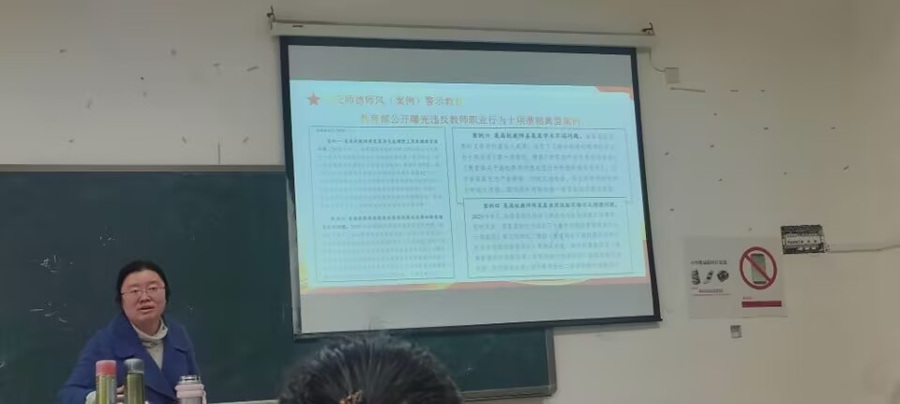 党课中,支部书记系统解读了《十项准则》的核心要义,强调“坚定政治方向、自觉爱国守法、传播优秀文化”是教师的立身之本,“潜心教书育人、关心爱护学生、坚持言行雅正”是育人之基。他结合高校教师典型案例,深入剖析了“学术不端”“师德失范”等行为的危害,警示全体教师时刻自重自省自警自励,严守职业底线。同时,他分享了学校优秀教师扎根讲台、关爱学生的感人事迹,以榜样力量激发教师的职业认同感与责任感。
