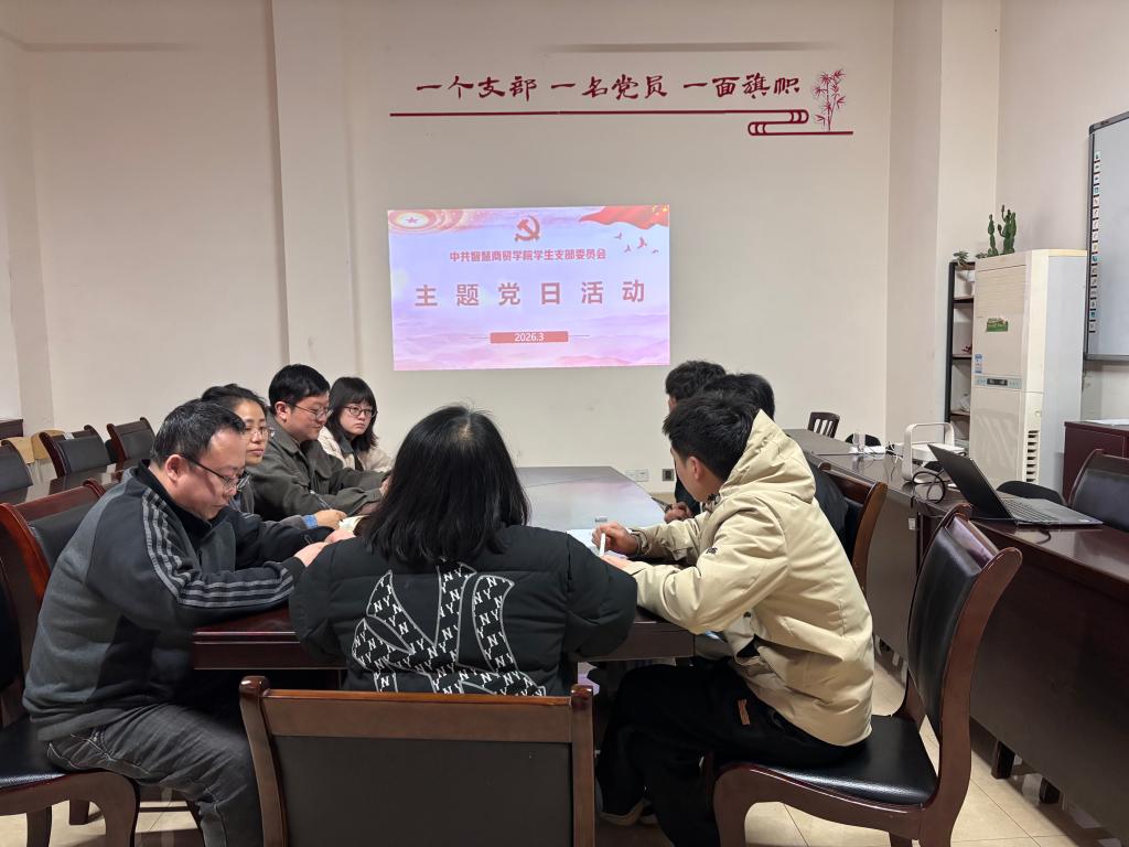 随后,支部聚焦全国两会精神开展专题学习。通过学习2026年政府工作报告、“十五五”规划纲要草案分领域重大战略任务,以及十四届全国人大四次会议关于教育、医疗、就业等民生问题的答记者问,党员们直观了解了国家发展的新目标、新部署,重点关注了教育领域的工作重点,深刻认识到职业教育在服务国家战略、赋能产业发展中的重要作用,进一步明确了青年学生党员的责任与方向。