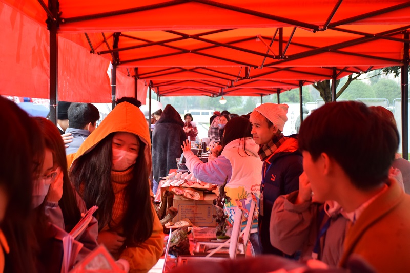 其中,区县特色扶贫产品区是现场销售热度最活跃的区域。为切实通过消费为扶贫助力,房地产营销学院发动全院师生,通过线上线下的方式,联络多个区县,为他们解决当地特色农产品滞销的问题。奉节的脐橙、忠县的血橙、綦江赶水的萝卜干和风味豆腐乳、荣昌的花生酥、巴南木洞的蜜枣、巫溪的腊味……全部都来到了活动现场。同学们在试吃之后,都纷纷竖起了大拇指,当然也忍不住“剁手”,好几种产品都已脱销。