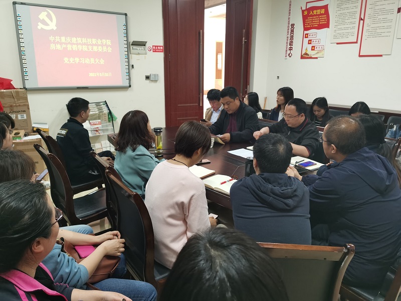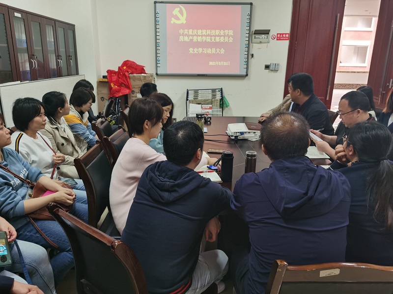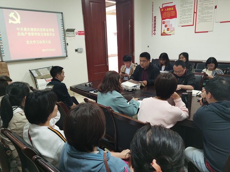 为深入学习贯彻习近平总书记在党史学习教育动员大会的重要讲话精神和党中央决策部署,按照学校党委的相关会议和文件精神,房地产营销学院于2021年3月31日召开党史学习教育动员大会,学院党支部书记孙小川同志和全体师生党员参加了会议。
