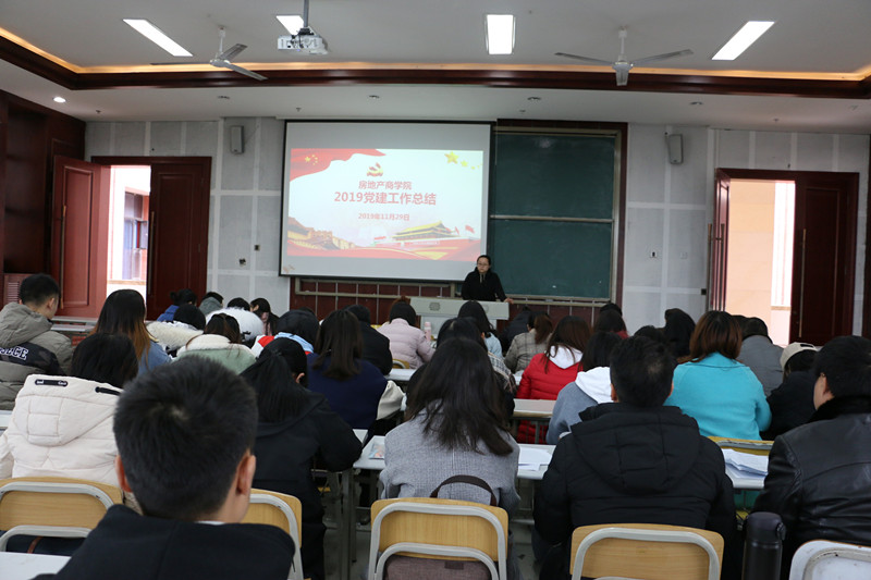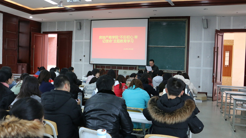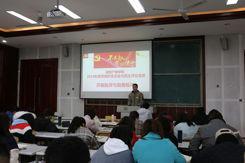 为深入贯彻落实习近平总书记在“不忘初心,牢记使命”主题教育工作会议上的重要讲话精神,全面把握“守初心、担使命,找差距、抓落实”的总要求,进一步增强基层党支部凝聚力和战斗力,加强教工党员党性修养,把初心和使命融入学院党建和改革发展中。2019年11月29日下午,房地产商学院党总支在笃学楼3405教室召开了组织生活会并开展民主评议党员互动。本次会议由房地产商学院学生党支部组织委员姚骏同志主持,党总支书记孙佳、房地产商学院教师党支部、学生党支部全体成员参加了本次会议。