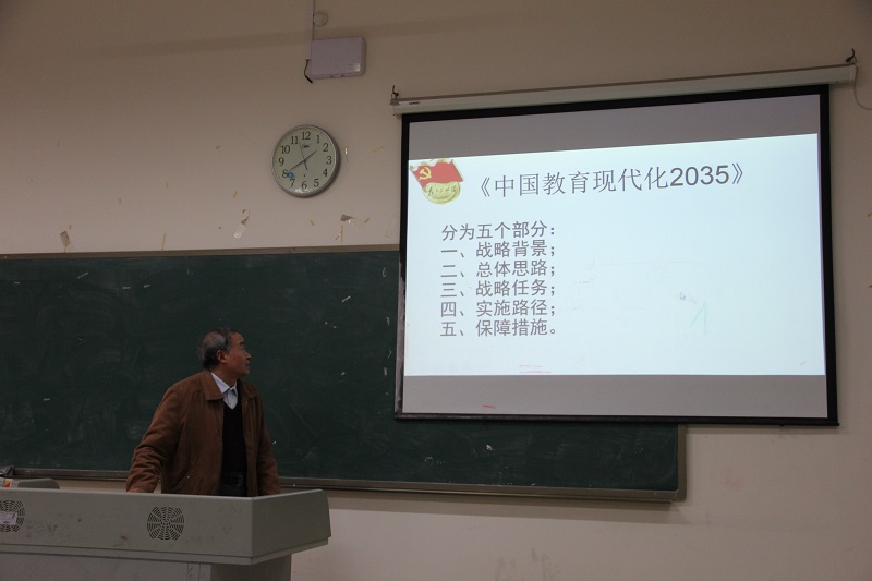会上,首先由孙小川副书记传达全市教育系统从严治党工作视频会议精神,接着由廖忠友教授带领大家学习中共中央关于教育现代化的相关文件内容,吃透文件精神。他指出,《中国教育现代化2035》提出了推进教育现代化的八大基本理念,以及面向教育现代化的十大战略任务,这对推动教育体制机制的高质量发展具有重要指导作用。《加快推进教育现代化实施方案(2018-2022年)》提出今后5年国家加快推进现代化的指导思想以及十项重点任务。《国家职业教育改革实施方案》为经济社会的发展和提高国家竞争力提供了优质的人才。廖忠友强调,推进教育现代化,办人民满意的教育,培养高素质的优质人才,是高校自身发展的必然内在要求,作为高校教师应紧跟时代步伐,牢记使命,坚持党的领导,工作落实到位,更加注重以德为先。作为学生党员更加注重全面发展,知行合一。