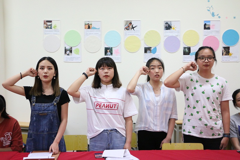 经投票,吴昊宇秦美灵、李嘉玲、樊宇航4名同志成功发展成为预备党员。随后进行预备党员的宣誓
