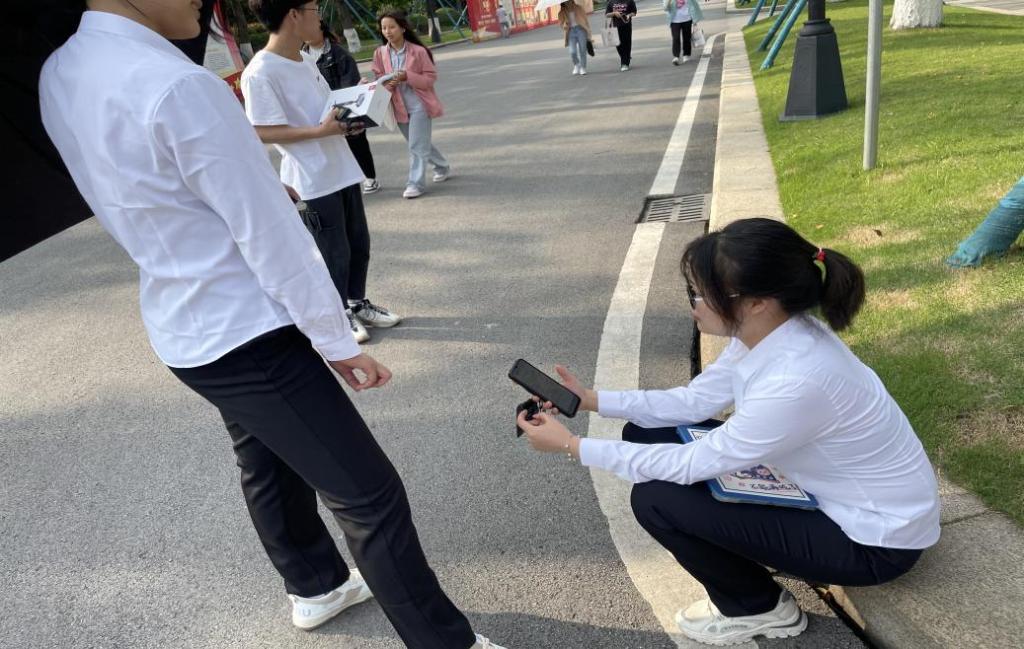 活动一开始,教研室老师首先进行了短视频拍摄前的指导与创作交流,提出了活动进行的建议和看法。和同学们一起进行脚本思路的梳理,同时将拍摄内容、地点、手法进行确定。教研室所有教师密切配合,相关教师落实任务,上下联动,齐心协力,共同参与。同学积极参与,根据脚本内容在校园内进行视频拍摄。
