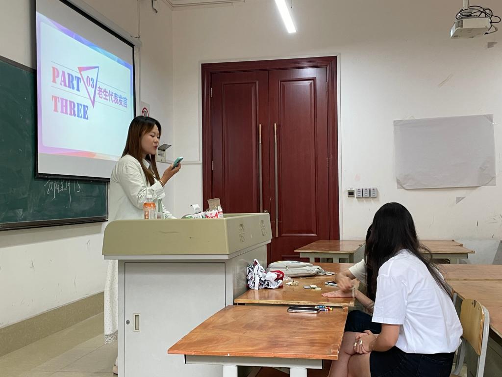 在第三环节,雷强老师特邀跨境电商专业优秀在校生王秋瑞、朱微、陈香余同学进行经验分享。她们围绕如何平衡学习、生活与竞赛,以及奖学金获取等方面展开交流,以亲身经历为新生树立了榜样,极大增强了新生的斗志与信心。分享结束后,新老生与教师之间开展了自由问答与交流,现场气氛热烈。