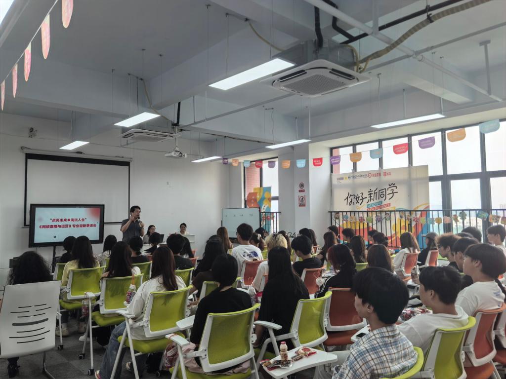 校企合作企业代表聂玉雯老师以活力主持点燃现场氛围,打破师生间的陌生感;数字营销教研室主任赵本宇老师进行发言,对新生们提出了期待与希冀。企业老师设计“团队协作游戏”,通过趣味任务强化新生间的协作意识与集体归属感;活动最后,费娟老师带队开展“茶歇+实训基地参观”,新生在轻松茶叙后,实地探访专业实训场地,近距离接触直播设备、虚拟演播厅等行业前沿资源;点淘企业教师同步参与,深度阐释“校企协同”的实践育人模式,让“学用结合”的培养路径更具象。
