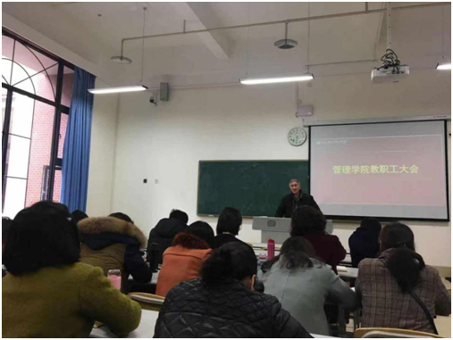 冬去春来,杨柳吐绿,管理学院全体教职工大会于2019年3月15日下午2点在笃学楼2308顺利召开,院长巫英士主持会议,全院教职工均按时到会。