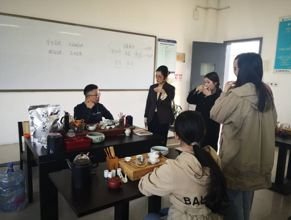 邀请到“六羡茶室”段承望总经理来校进行茶艺交流,多动过程中不仅引来老师的观摩学习,也迎来了有兴趣的学生着茶服、携带茶席设计用品参加。