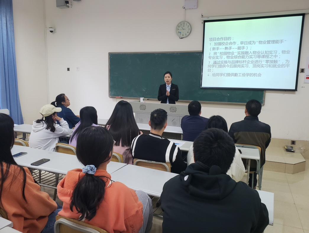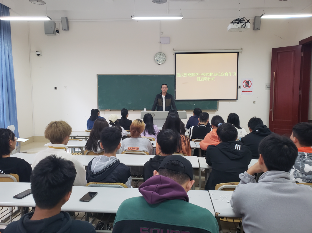 此次启动仪式由叶昌建主任主持,首先叶主任就此次校园物业校企合作项目做了简单介绍,紧接着李梅经理从企业角度讲述了同学们可以在此次项目中的收获,建筑管理学院郝院长也从自己的经历给同学们分享了此次合作项目对于同学们的意义,最后由新鸥鹏物业的周主管将项目具体的安排做了详细介绍。