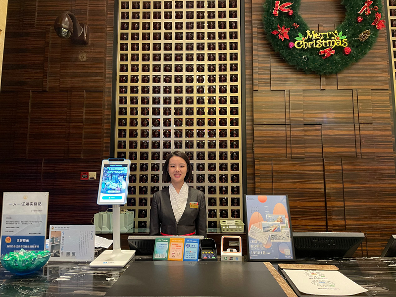 在重庆君豪大饭店,刘轶主任带领指导老师深入实习同学工作岗位进行走访,与实习同学一一交流。酒店人事经理林芝芝向各位指导老师介绍了同学们的实习工作情况和疫情防控措施,酒店副总经理陈枫到场听取了顶岗实习工作反馈意见。