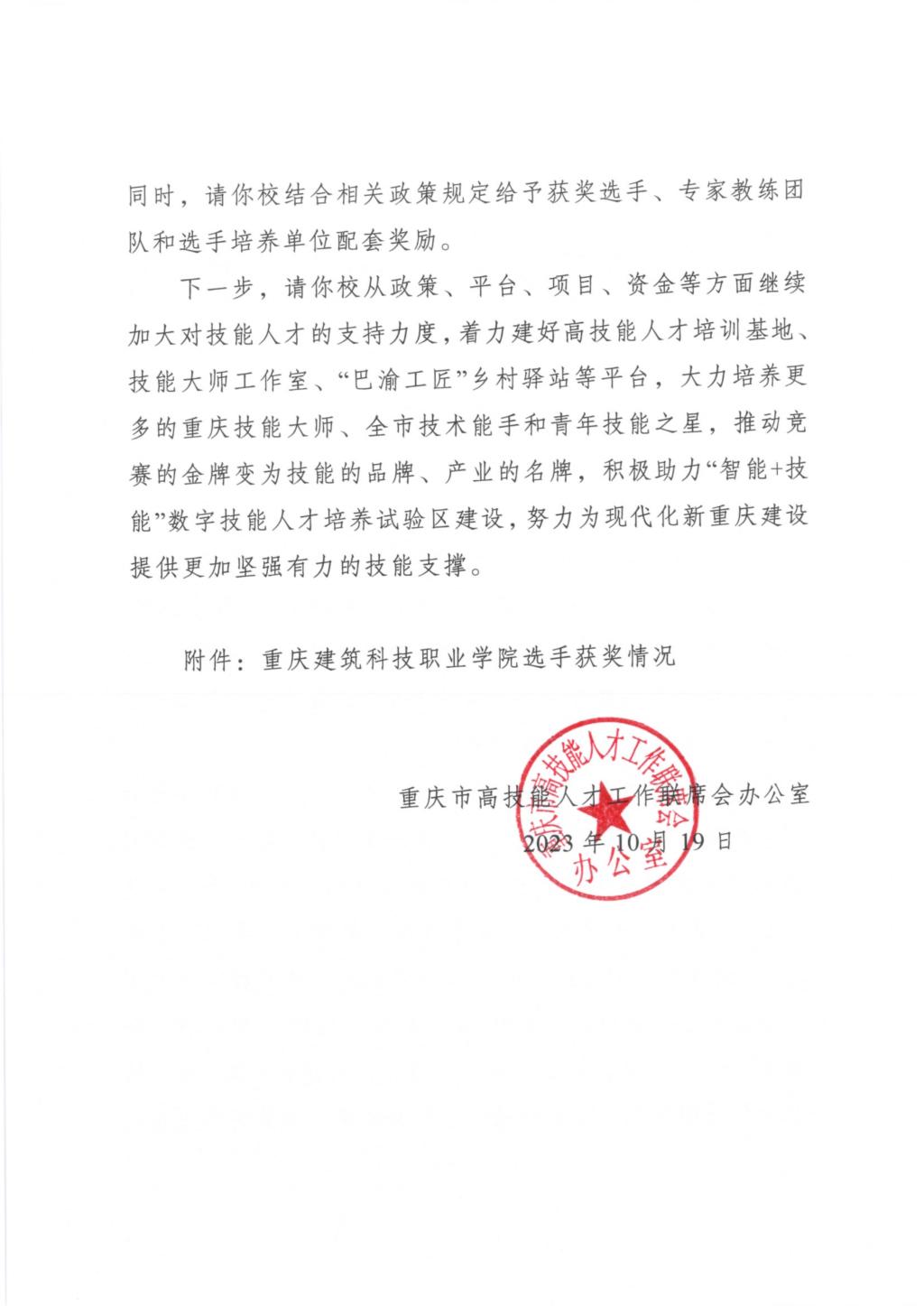 Kaiyun官方网站登录入口教师获人社部、重庆市高技能人才工作联席办公室表扬