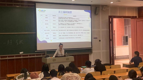 招聘宣讲会上,张园长作为戈米孚教育集团的代表人,向在场的学生们介绍了戈米孚教育集团的企业文化、发展历程以及未来的战略规划,同时,详细讲解了企业的用人需求、职位职责、福利待遇和晋升通道等关键信息,为学生们提供了清晰明确的职业发展方向和岗位选择参考,帮助学生们对即将踏入的职场有了更为清晰和全面的认识。宣讲结束后,同学们积极与张园长进行交流,主动咨询招聘信息,并递交了简历等材料,现场氛围热烈。