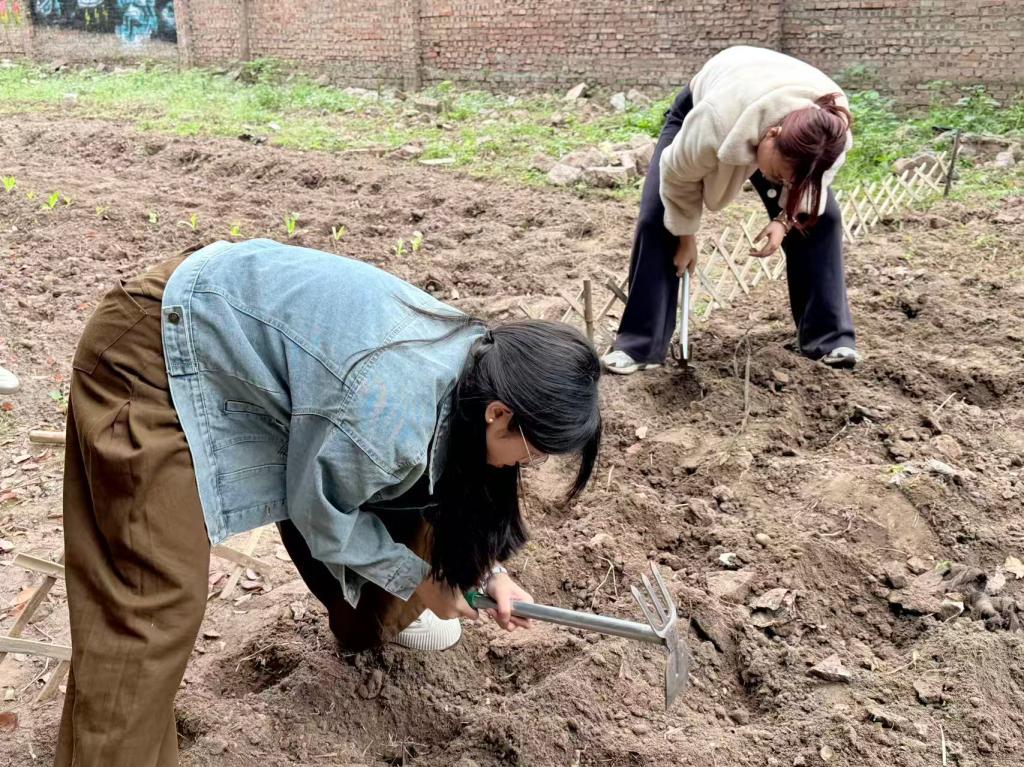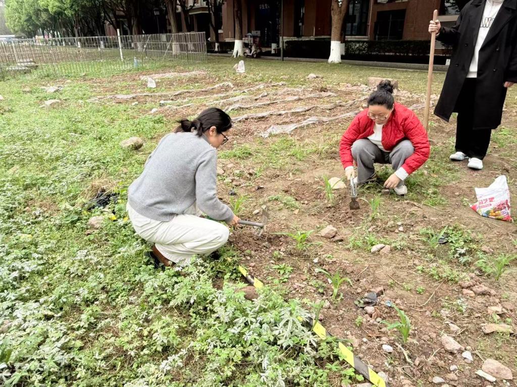 从除草松土到施肥浇水,从新苗栽种到篱笆搭建,每一项工序都凝聚着师生们的汗水与巧思。大家在亲手劳作中感受耕耘的艰辛,在照料作物中体悟“一分耕耘,一分收获”的道理,让劳动教育从课堂延伸到田间,让服务意识、实干精神在实践中得到锤炼。