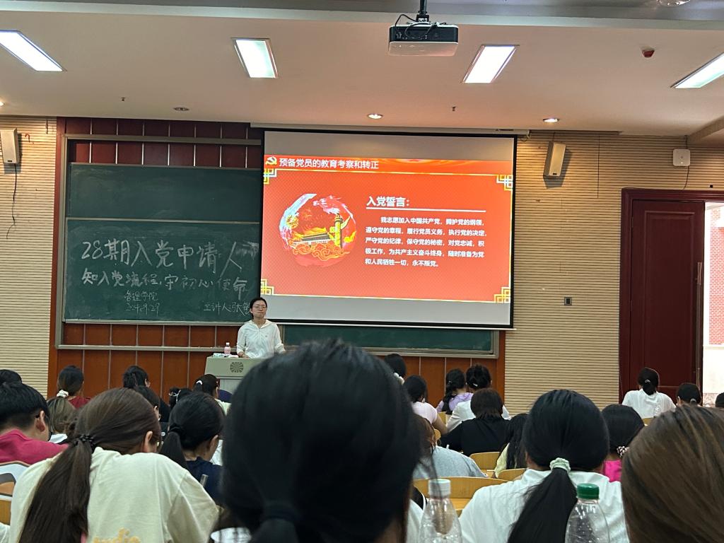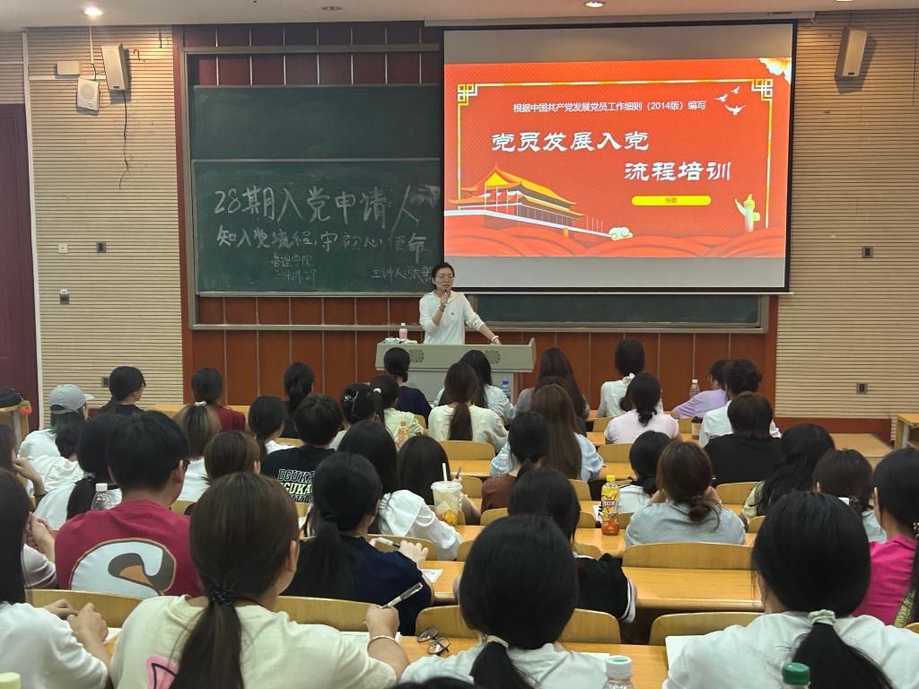为提高入党申请人思想政治修养,加强理论学习,强化同学们使命意识。智慧康养学院学生党支部于2024929日在笃学楼1205教室开展第28期入党申请人培训班第一课:《知入党流程,守初心使命》。参会人员有第十二届学生党员服务站骨干及第28期全体入党申请人。学生党支部书记张敏老师作为本次培训课的主讲人。