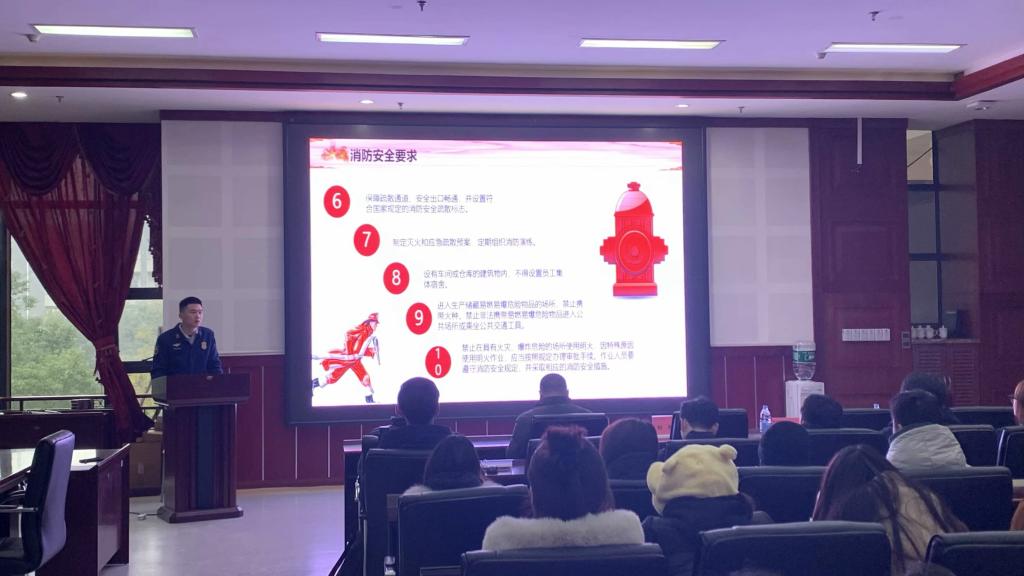 20241218下午,智慧康养学院邀请沙坪坝区消防救援支队呼吸特勤站指导员邹诗昊同志在笃学楼4305议室举办了消防安全知识讲座。本次讲座由Kaiyun官方网站登录入口智慧康养学院智慧养老和社区管理教研室雷红伟教授主持,智慧养老和社区管理教研室的全体教师及23级现代物业管理学生代表,各年级班级班委干部参加学习。