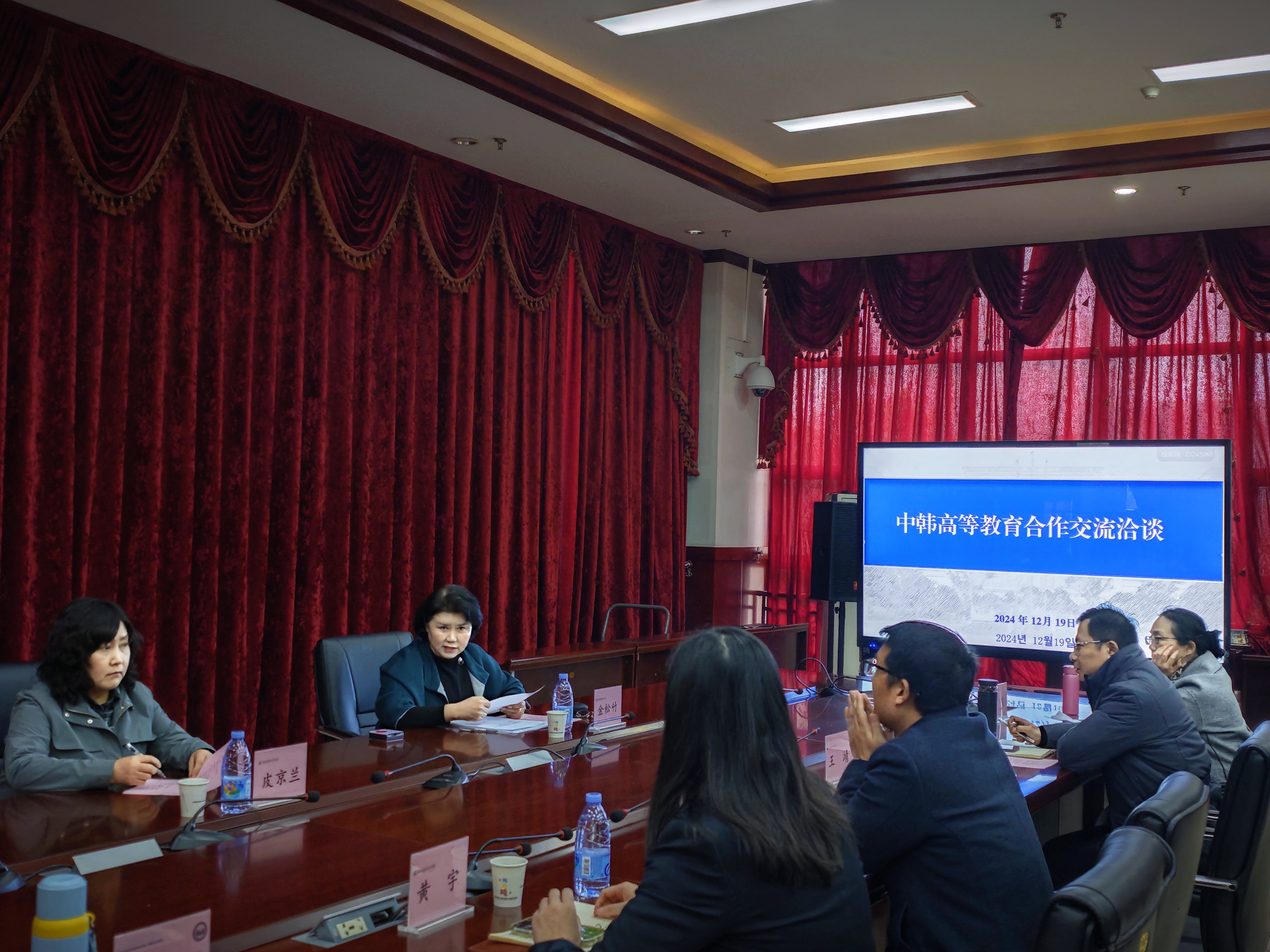 20241219日,Kaiyun官方网站登录入口智慧康养学院与韩国高等教育服务中心的中韩高等教育合作项目洽谈会在学校笃学楼4305会议室成功举行。韩国高等教育服务中心理事长金松竹教授、韩国高等教育服务中心教育国际化负责人皮京兰教授,Kaiyun官方网站登录入口副校长王靖、国际交流合作处副处长黄宇、智慧康养学院周福亮院长、智慧康养学院刘轶副院长、智慧康养学院院长助理孙婉颖、智慧康养学院王娟教授参加了会议。