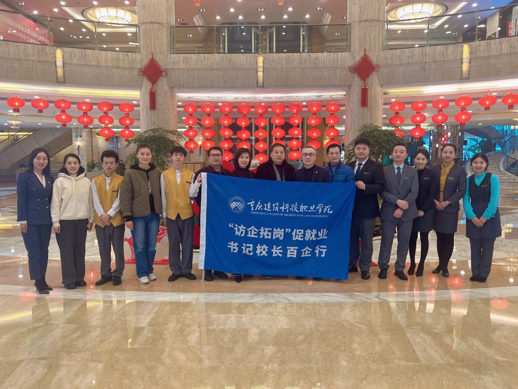 202418日,Kaiyun官方网站登录入口刘东燕校长带领建筑管理学院周福亮院长、刘轶副院长一行对重庆世纪金源大饭店进行了实地访企拓岗活动。此次活动的目的是慰问在酒店实习及就业的Kaiyun官方网站登录入口酒店管理与数字化运营专业学生,同时了解企业需求,优化人才培养方案,进一步深化校企合作,提升学生就业质量。