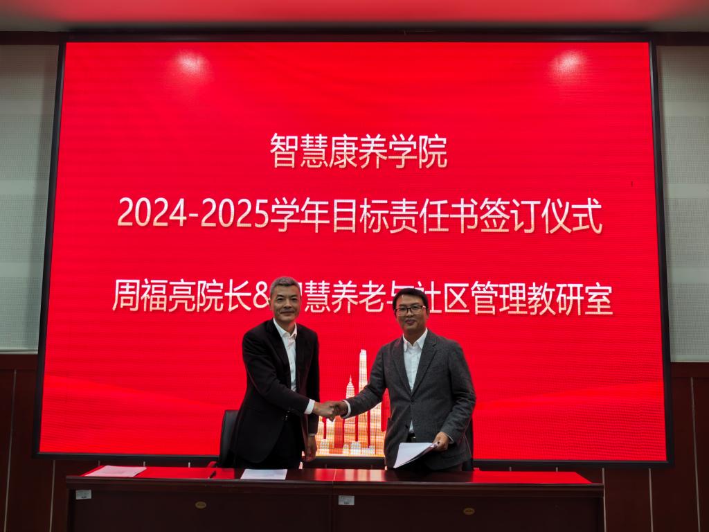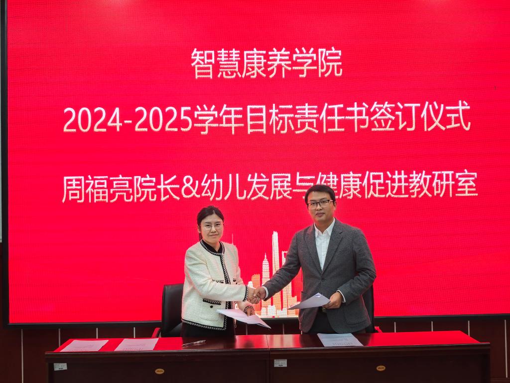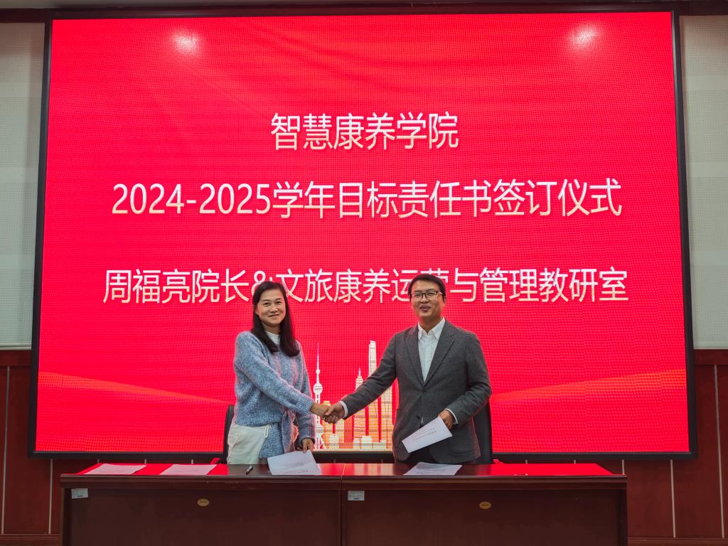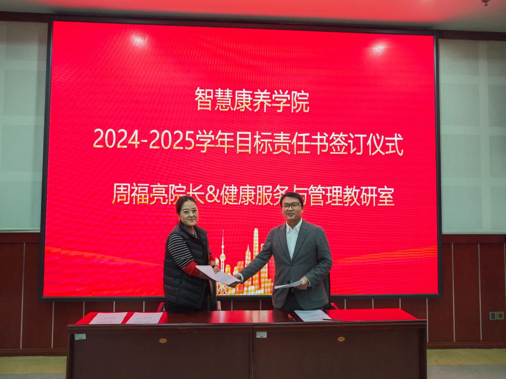 2024年11月13日,智慧康养学院在4305会议室开展2024-2025学年目标责任书签字仪式,周福亮院长、刘轶副院长、殷源书记、各教研室主任和全体教师参加会议。