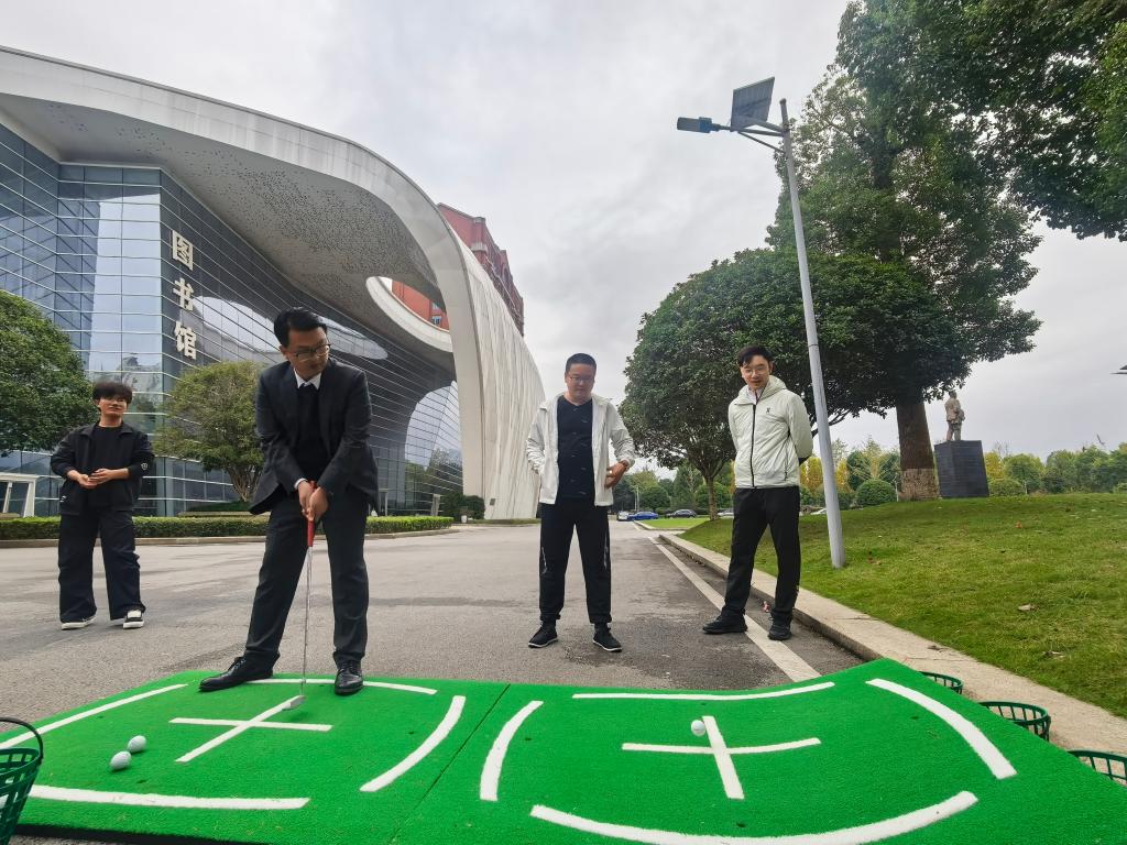 为增强互动体验,社团特别设置了趣味推杆体验区,并准备了丰富奖品。在社团代表的耐心指导下,不少同学和老师纷纷驻足,学习握杆与推杆的基本技巧,踊跃参与趣味挑战。大家在一次次尝试中逐渐掌握动作要领,现场欢笑声不断,也在轻松愉快的氛围中感受到高尔夫运动的魅力。