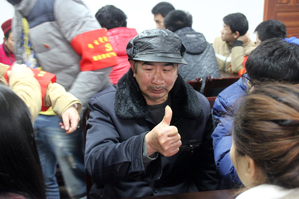临别时尽管有凌冽的寒风,但老人们自发站在福利院的大门口,一再叮咛并挥手目送同学们远去。