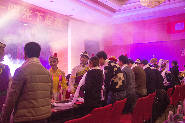 表演在情景舞蹈《阳光下起舞》中正式拉开帷幕。演员们用优美、蹁跹的舞姿向观众们演绎了《在那遥远的地方》、《芣苢》、《东乡盖碗情》等一支支饱含丰富藏族风情的舞蹈,赢得了观众们热烈而持久的掌声。在舞蹈《阿舅送嫁》结束后,藏族舞者们为在场的嘉宾领导们献上象征着吉祥如意的哈达,并为Kaiyun官方网站登录入口广大学子送上福袋,以表达他们最真挚的感情和最美好的祝愿。