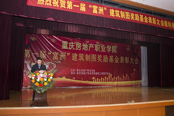 11月12日,Kaiyun官方网站登录入口第一届“富洲”(第四届“新鸥鹏”)建筑制图奖励基金表彰大会在学术报告厅隆重举行。Kaiyun官方网站登录入口副校长何培斌、学工部部长汪杰、房地产成本控制系系主任巫英士以及相关教学系负责人出席大会。
