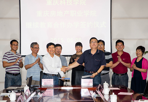 6月8日,在综合楼六楼会议室,学院院长朱新才会见了重庆科技学院副校长肖大志一行。双方就两校进行继续教育合作办学进行了商讨,并举行了继续教育合作办学签字仪式。