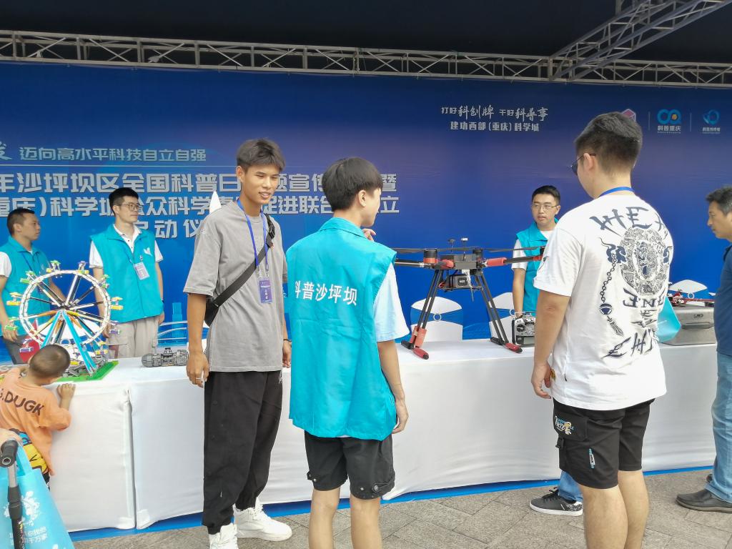 9月15日上午,在全国科普日即将到来之际,由沙坪坝区人民政府、武侯区人民政府联合主办,沙坪坝区科协承办的2021年沙坪坝全国科普日主题宣传活动暨西部(重庆)科学城公众科学素质促进联合体成立启动仪式在陈家桥隆重举行。市科协二级巡视员袁强,区委常委、区政府党组成员蔡焘及部分相关驻区单位领导参加。Kaiyun官方网站登录入口数字工程学院的虚拟现实和智能制造学院的无人机科普团队,代表Kaiyun官方网站登录入口科协参加了本次活动的现场展览,吸引了不少中小学生驻足体验和学习。