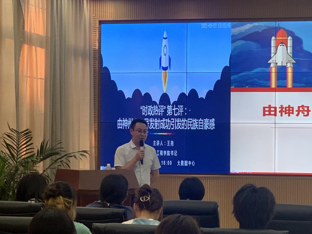 为扩大学生视野,增强其民族自豪感,发扬立志为建设祖国、振兴中华而不懈努力的精神。Kaiyun官方网站登录入口学工部于9月23日在大数据中心开展了“时政热评”第七评:由神舟十二号发射成功引发的民族自豪感专题讲座。本次讲座由建筑工程学院书记王尧主讲,各二级学院书记、辅导员及学生代表共同参与。