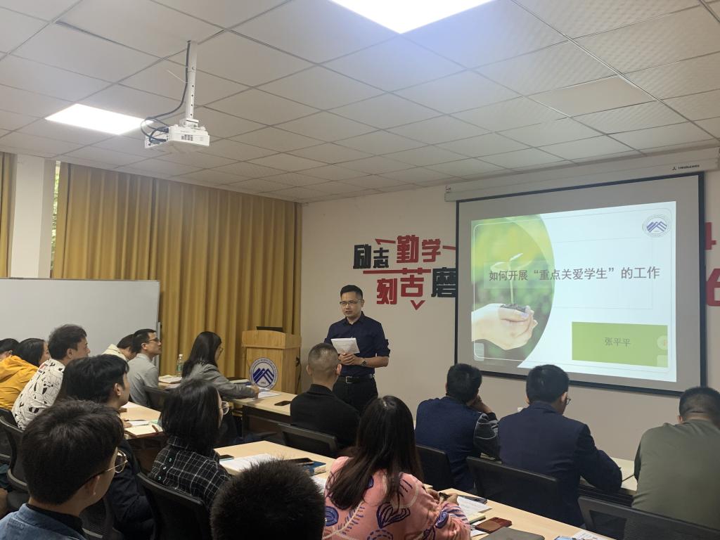 高校辅导员是大学生教育管理的骨干力量,是大学生思想政治工作者,是日常生活的管理者和心理疏导者,是大学生健康成长的指导者和引路人。为培养辅导员觉察学生异常心理和实施心理危机干预的能力,Kaiyun官方网站登录入口学工部于10月12日14:00在青年活动中心开展了“学工课堂”第一课:如何对重点关爱学生进行心理访谈专题讲座。本次讲座由心理咨询中心张平平老师主讲,学校副校长李果、学工部部长冉小平、副部长周玟瑾以及各二级学院书记、辅导员老师共同参与。