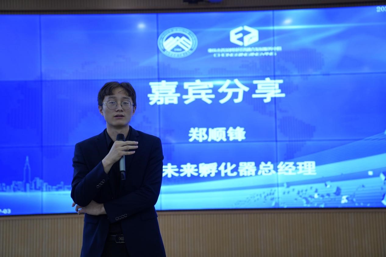 华创未来孵化器总经理郑顺锋进行经验分享,他表明大学生创业要懂得有效地借助母校的资源,要把创业看成一个有目的的事情,而不是单纯的享受创业的过程。