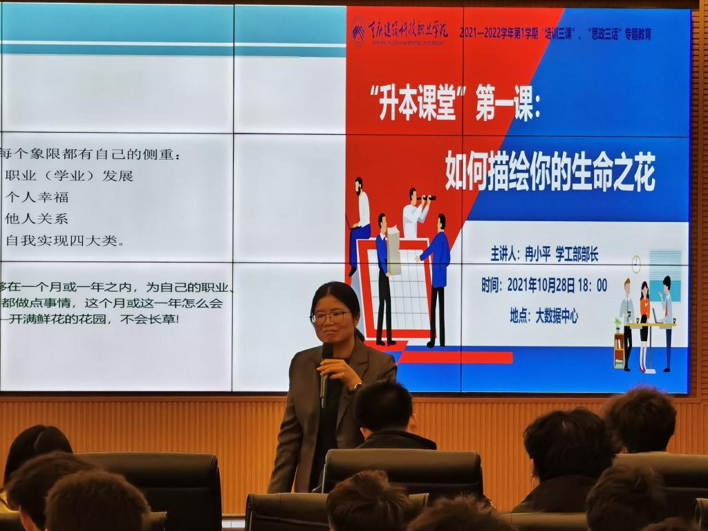 为帮助大一新生提早对自己的未来有所规划,了解更多专升本信息,做好学习计划,搭建升本学生交流平台。10月28日18:00Kaiyun官方网站登录入口学工部在大数据中心开展了“升本课堂”第一课:如何描绘你的生命之花专题讲座。本次讲座由学工部部长冉小平主讲,各二级学院书记、辅导员及2021级意向升本学生共同参与。