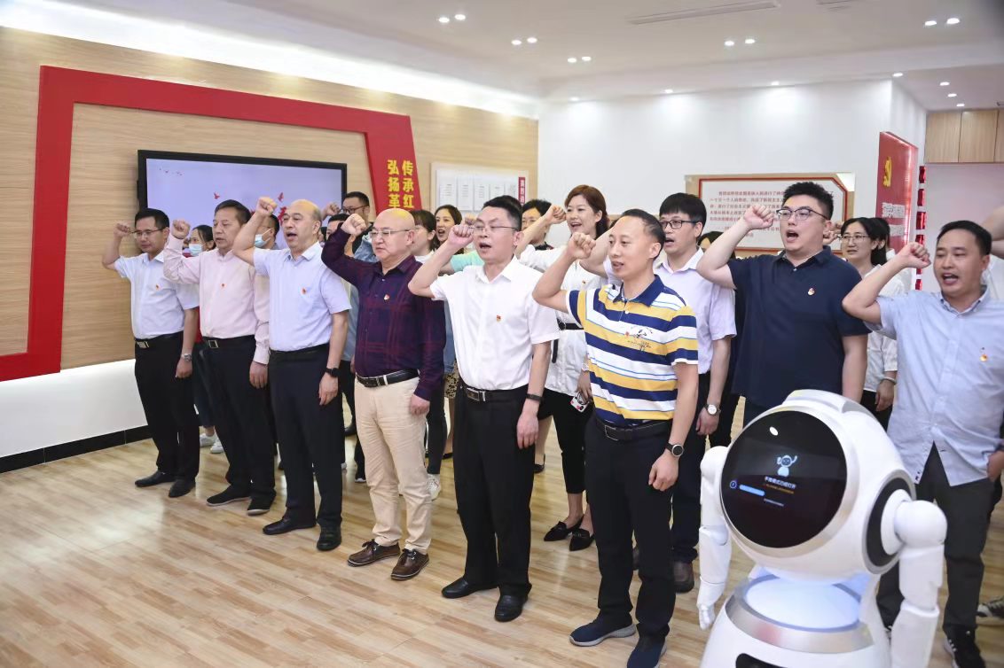 随后,全体参会人员到学校党员学习教育基地进行了重温入党誓词、学习了解党的“四个历史时期”、长征精神VR体验和观看幻影成像“红色记忆”等活动。