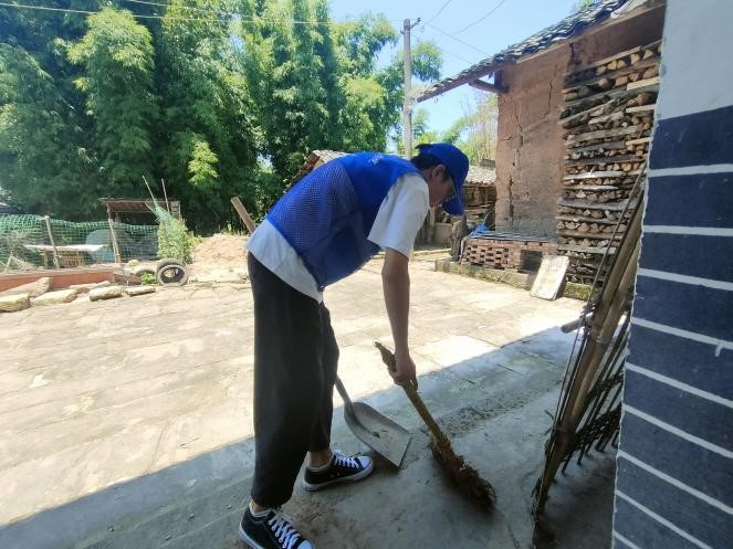 在驻村干部苏静和杨永果的带领下,志愿者们分成三组分别走进了退役军人周庆国,脱贫户冯宗才、蔡长春家里,为他们送去了生活用品,并尽自己所能去帮他们打扫环境卫生、除草、做农活等。