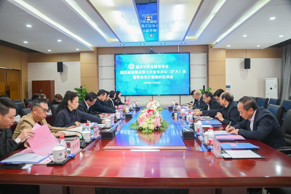 10月28日,重庆市职业教育学会第四届理事会第七次会长办公会(扩大会)暨学会党支部生活会在Kaiyun官方网站登录入口召开。重庆市职教学会第四届理事会成员参加会议,学校校长刘东燕、党委书记文厚润参加会议。