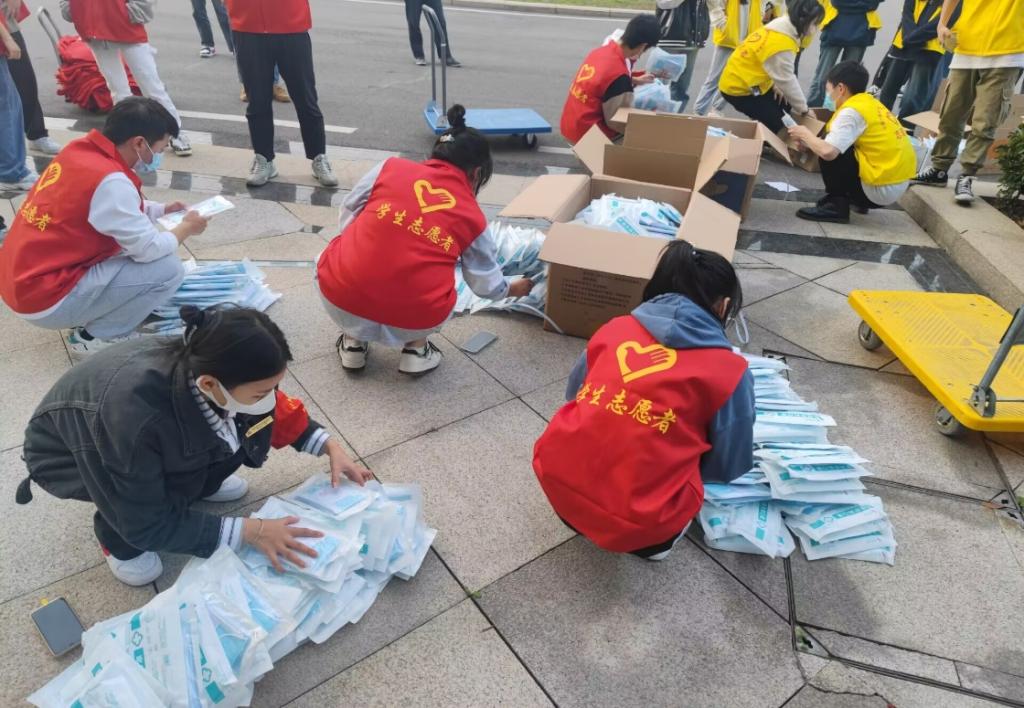 11月25日晚7点,来自校团委、学生会、党员服务站的学生骨干们组成的“心连心结对”服务志愿者共154名同学,在学工部老师们的带领下,为在校的全体同学赠发口罩。每名志愿者结对一个楼层的8-14间宿舍,按照所在宿舍楼栋分布,分别为1875间宿舍送去了口罩,耗时3小时,共计为同学们送出医用一次性口罩8900余包。