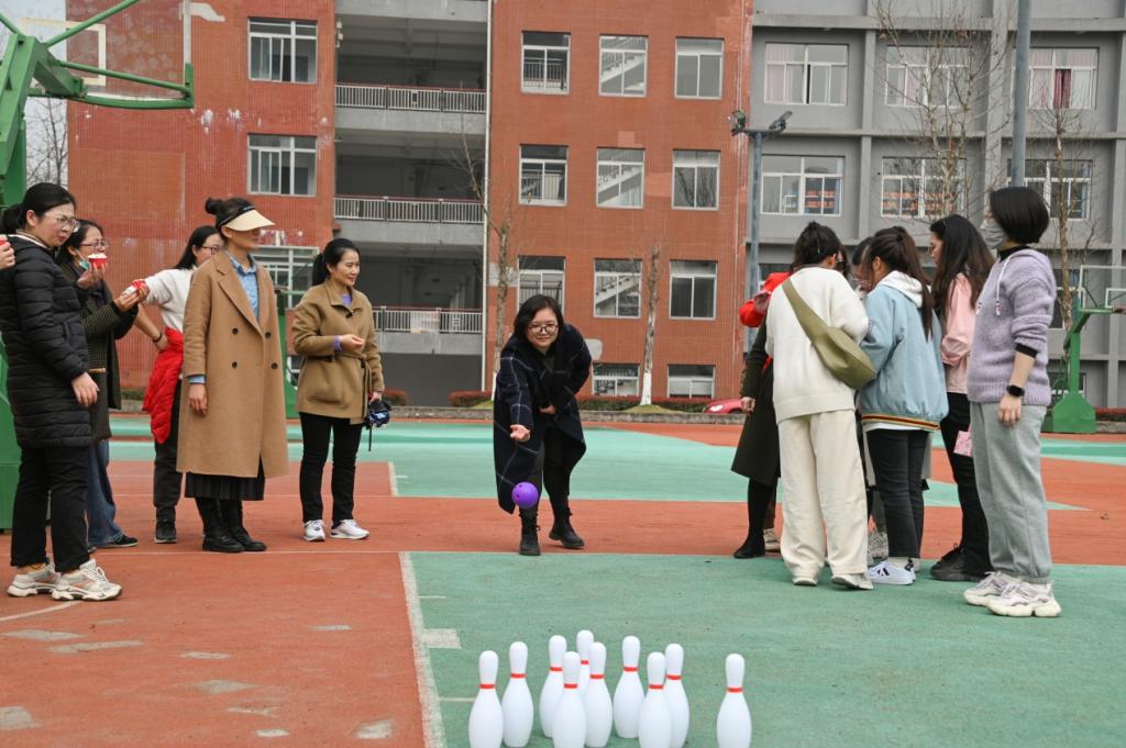 这场趣味活动有投壶、打保龄球和蒙眼摸乒乓球等3个游戏,参与者根据游戏的得分再进行套圈领奖,活动现场气氛热烈,欢声笑语不断。这场趣味活动增强了女教职工的凝聚力和向心力,充分展示了新时代女性的风采,弘扬了自尊自爱自信自强的“三八”精神。