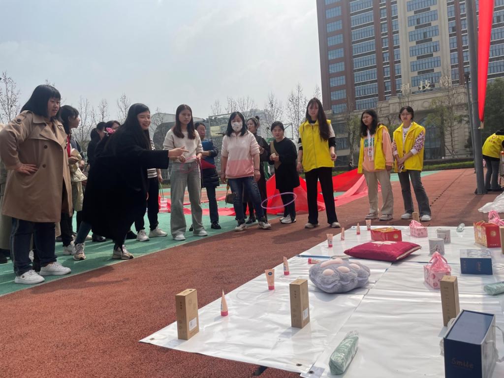 三月春意浓,巾帼绽芳华。3月8日,学校工会联合图书馆、校团委和宣传部在篮球场组织开展庆祝“三八”国际劳动妇女节趣味活动。校工会主席李果同志、副主席汪杰同志出席活动。100余名女教职工参加本次趣味活动。