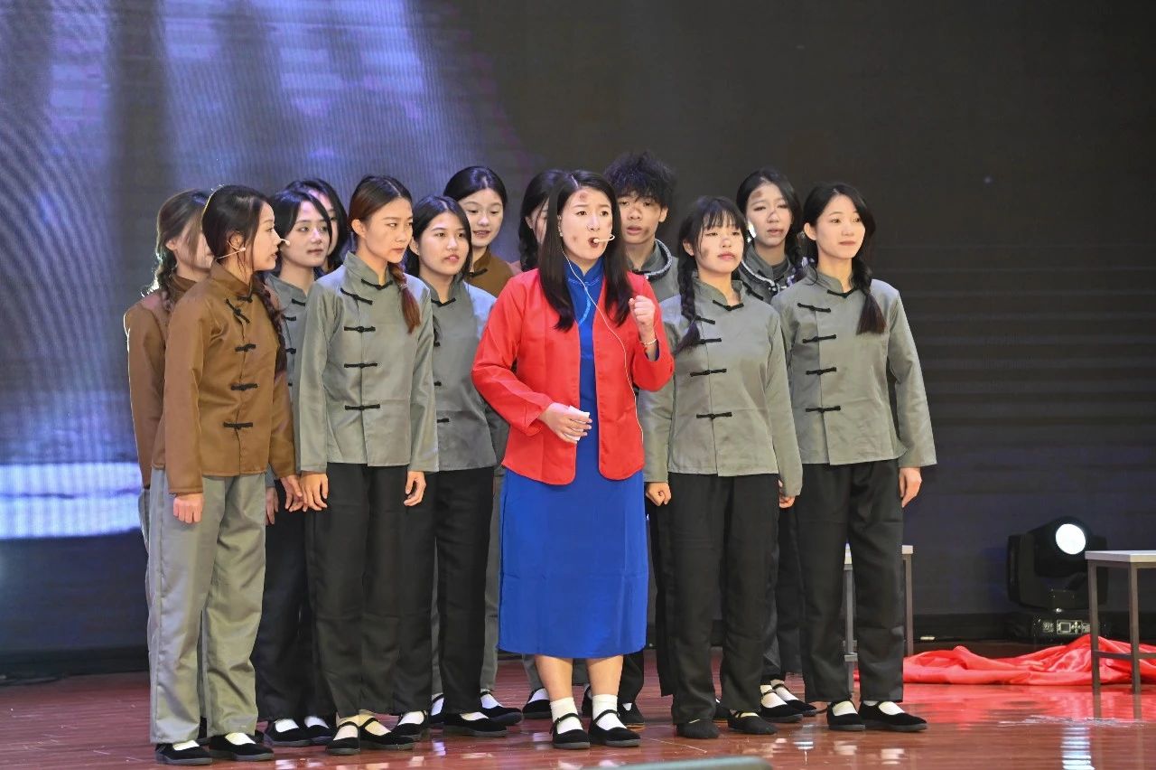 面对敌人的严刑拷打和威逼利诱,她始终坚守共产党员的信仰和底线,用生命捍卫了革命事业。重庆艺术工程职业学院同学们以《红岩精神,永放光芒》为题,精彩演绎和呈现了江姐及红岩先烈们的英雄气概和革命精神,把江姐这样一个难忘的名字,一段可歌可泣的英勇故事,一部民族解放的英雄史诗展现给了现场的师生。