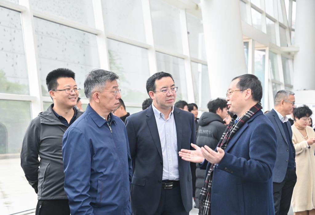 开幕式上,学校校长刘东燕致辞。对夏之宁教授个展在Kaiyun官方网站登录入口成功举办表示祝贺,对夏教授支持学校教育教学工作表示感谢。同时,叮嘱同学们要多看、多学、多实践。在陶冶艺术情操的同时,提高自己的专业实践能力,为以后更好地从事相关专业工作打下坚实基础。随后,展览艺术家夏之宁教授对展览主题进行了简要阐释,对部分作品进行解读。学校党委书记何光明对各位嘉宾的到来表示由衷的感谢,并宣布展览正式开幕。