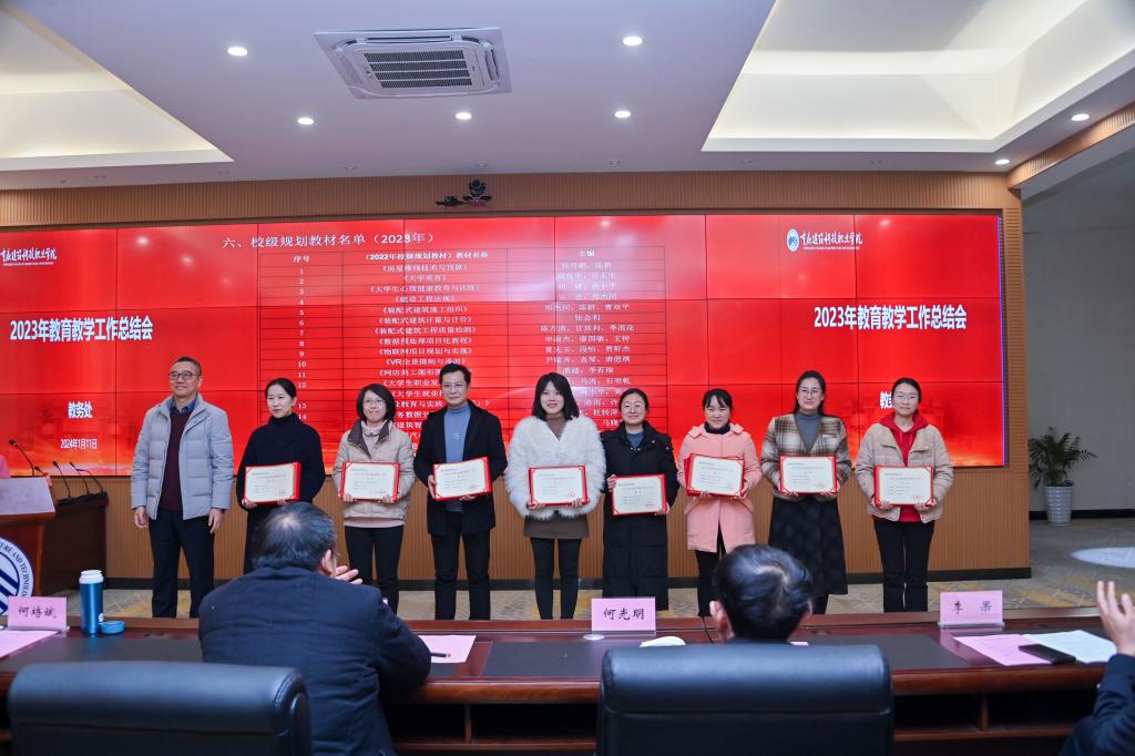 会议的第三阶段,对2023年教育教学工作中的优质项目与团体进行表彰,分别是:2023年校级教师教学能力大赛获奖项目、2023年校级专业教学资源库立项项目、2023年校级在线精品课程与一流核心课程认定、2023年校级“大思政课”优秀案例评选、年度校级规划教材立项与优秀教材认定,共计表彰项目90项。