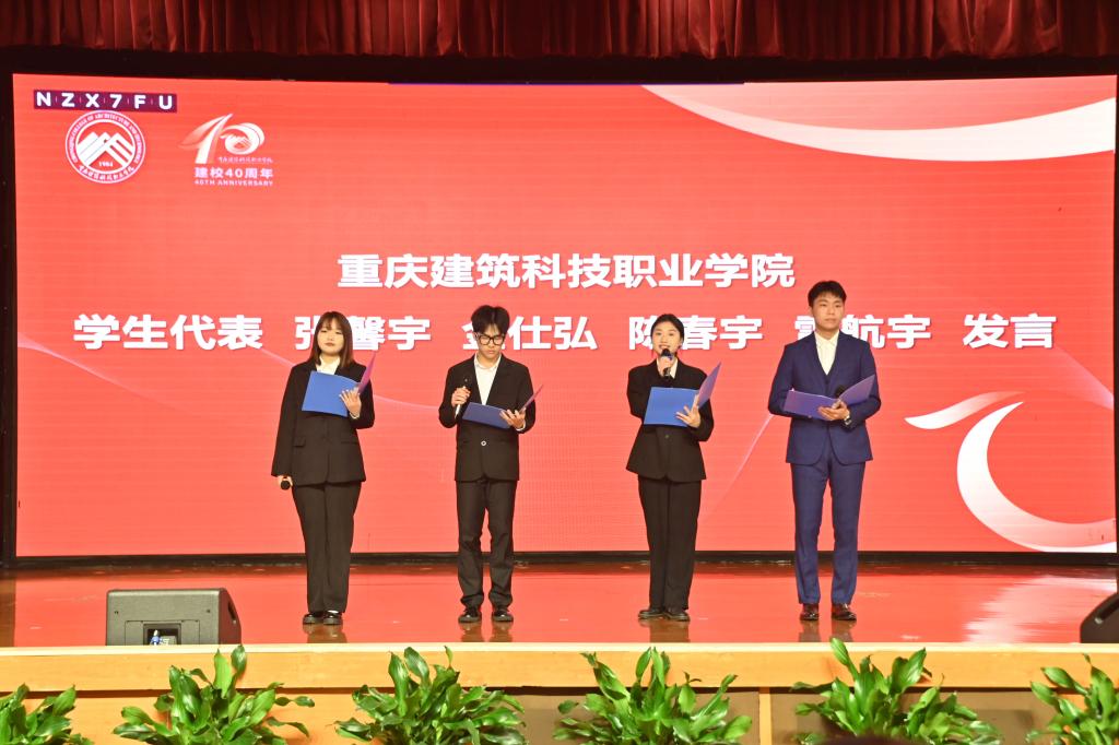 会上,学校优秀教师代表建筑工程学院院长刘娜娜教授,杰出校友代表重庆永和工程造价咨询有限公司副总经理何巨浪,学生代表张馨宇、金仕弘、陈春宇、雷航宇分别进行发言,向学校表达最真挚的祝福和最崇高的敬意,愿学校在未来的日子里更加繁荣昌盛、更加辉煌灿烂!