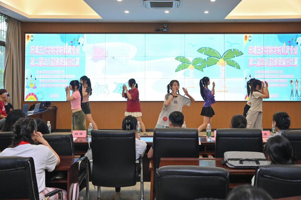 每一次比赛都是一次成长的蜕变,每一次比赛都是不断拼搏的见证。环境艺术学院学前教育幼儿韵律操创编技能大赛成功举办,不仅为学生搭建了一个展示风采的平台,还为学生的专业化成长起到了示范引领作用,相信在“以赛促学”的号召下,同学们定能学以致用,成就更好的自己!此外,学院领导也对参赛选手们的出色表现表示了肯定和赞赏并对每个比赛小组进行公平、公正、公开的现场打分评定出各小组的名次,同时也期待他们在未来的学习和工作中继续发扬这种进取精神和创新精神。