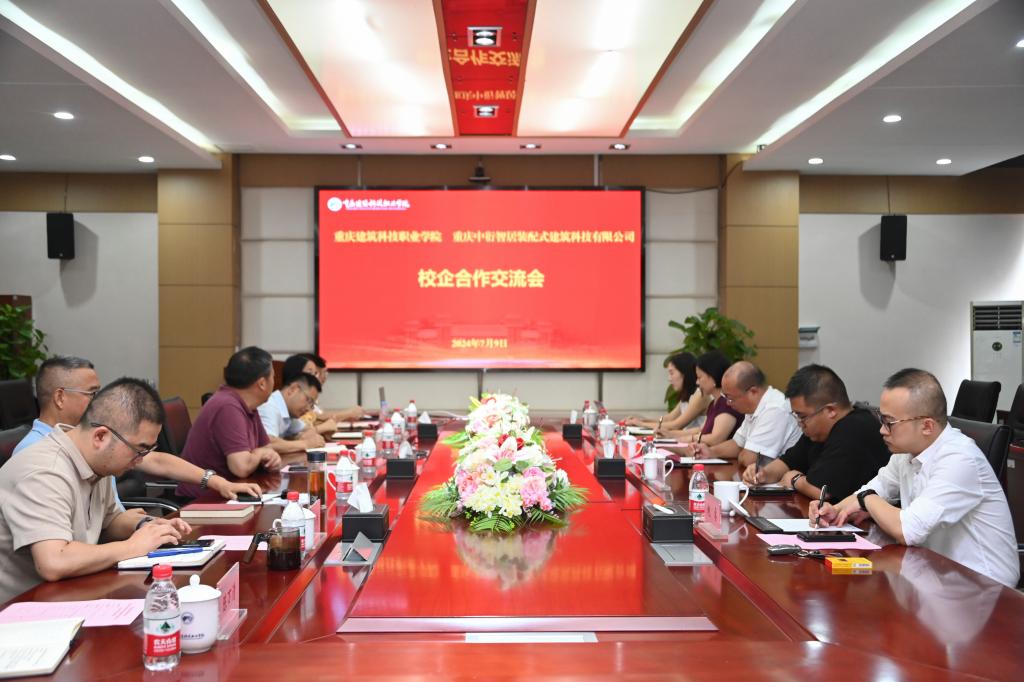 为进一步深化校企合作,精准对接校企需求,7月9日上午,中衍智居装配式建筑科技有限公司总经理朱敬建率队来到学校,就全面加强校企产学研深度合作开展洽谈交流,并签署产学研战略合作协议。中衍智居总经理朱敬建,常务副总李尚霖,学校校长刘东燕、副校长李果出席会议,校长助理晏华主持会议。
